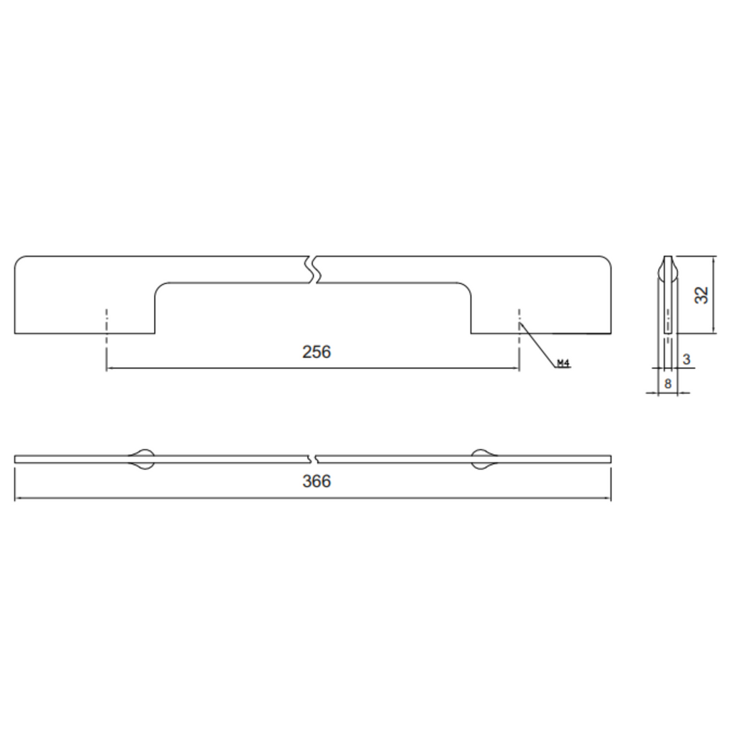 Technical data: Furniture Handle 256mm U086 - Chrome