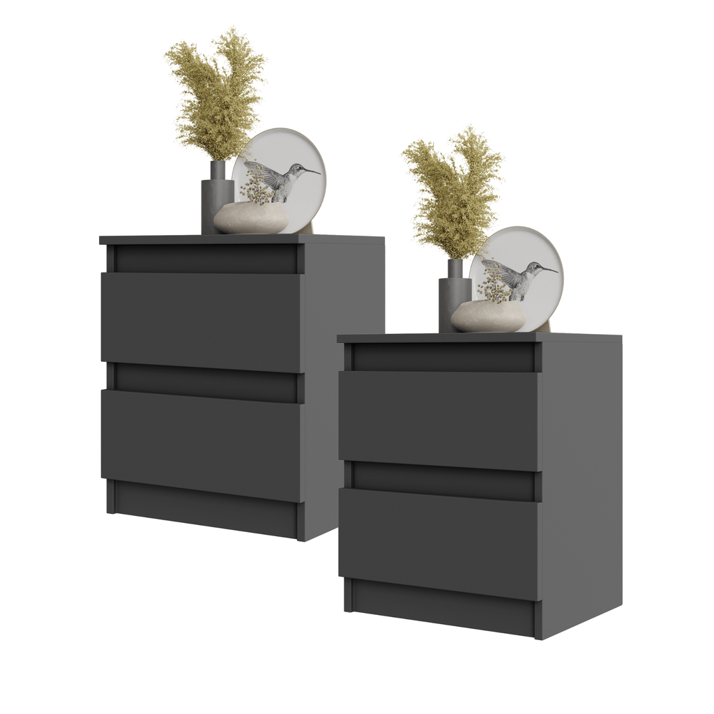 Scandinavian Bedside Table with 2 Drawers – Anthracite